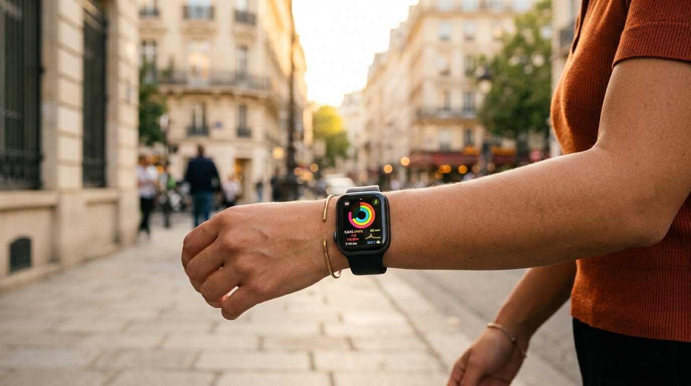 On voulait une montre connectée qui tient ce qu'elle affiche. Avec de vraies finitions, pas du plastique brillant. Le genre de produit qu'on garde deux ans sans regretter le choix. Ça n'existait pas. Alors on l'a fait.